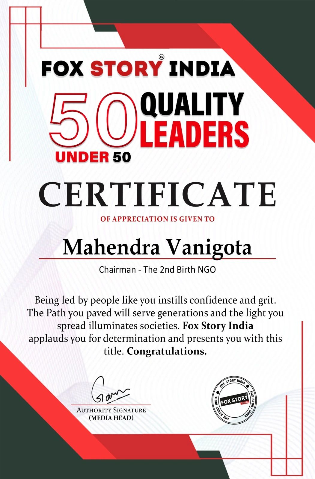 Mahendra Vanigota Awarded by "Rashtriya Abhiman Purashkar" a National level Award on 25th March 2023 in Mumbai at Yashwantrao Chavan Auditorium, Nariman Point.